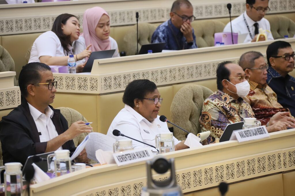 Wakil Menteri Dalam Negeri (Wamendagri) Ribka Haluk (tengah) berbicara pada Rapat Kerja Pembicaraan Tingkat I tentang Pembahasan 10 RUU Kabupaten/Kota di Ruang Rapat Komisi II DPR RI, Jakarta, Rabu (16/7/2025). (Foto: Puspen Kemendagri)