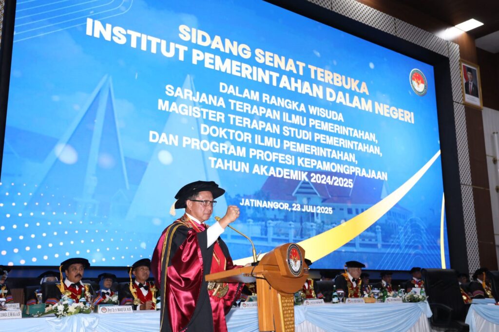 Hal itu disampaikannya dalam Sidang Senat Terbuka IPDN dalam rangka Wisuda Sarjana Terapan Ilmu Pemerintahan, Magister Terapan Studi Pemerintahan, Doktor Ilmu Pemerintahan, dan Program Profesi Kepamongprajaan Tahun Akademik 2024/2025. Kegiatan berlangsung di Gedung Balairung Rudini, Kampus IPDN Jatinangor, Kabupaten Sumedang, Jawa Barat, Rabu (23/7/2025).