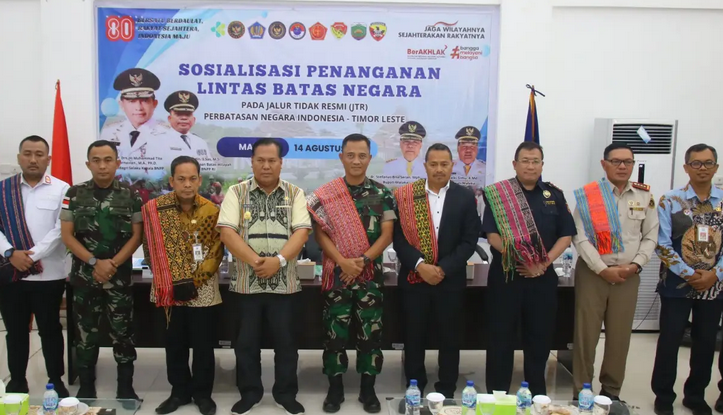 Malaka, NTT — Badan Nasional Pengelola Perbatasan (BNPP) RI melalui Deputi Bidang Pengelolaan Batas Wilayah Negara (Deputi I) menggelar Sosialisasi Penanganan Jalur Tidak Resmi (JTR) lintas batas negara di Pos Lintas Batas Negara (PLBN) Motamasin, Kabupaten Malaka, Nusa Tenggara Timur (NTT), Kamis (14/8/2025).